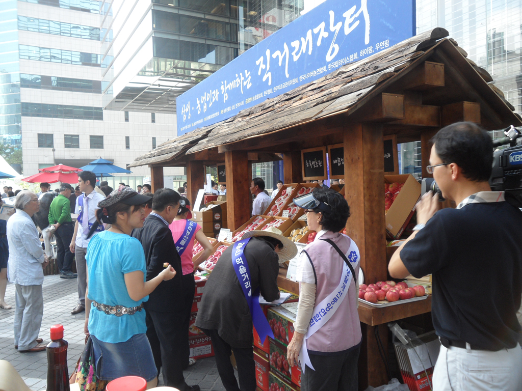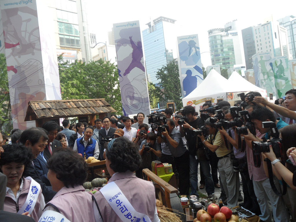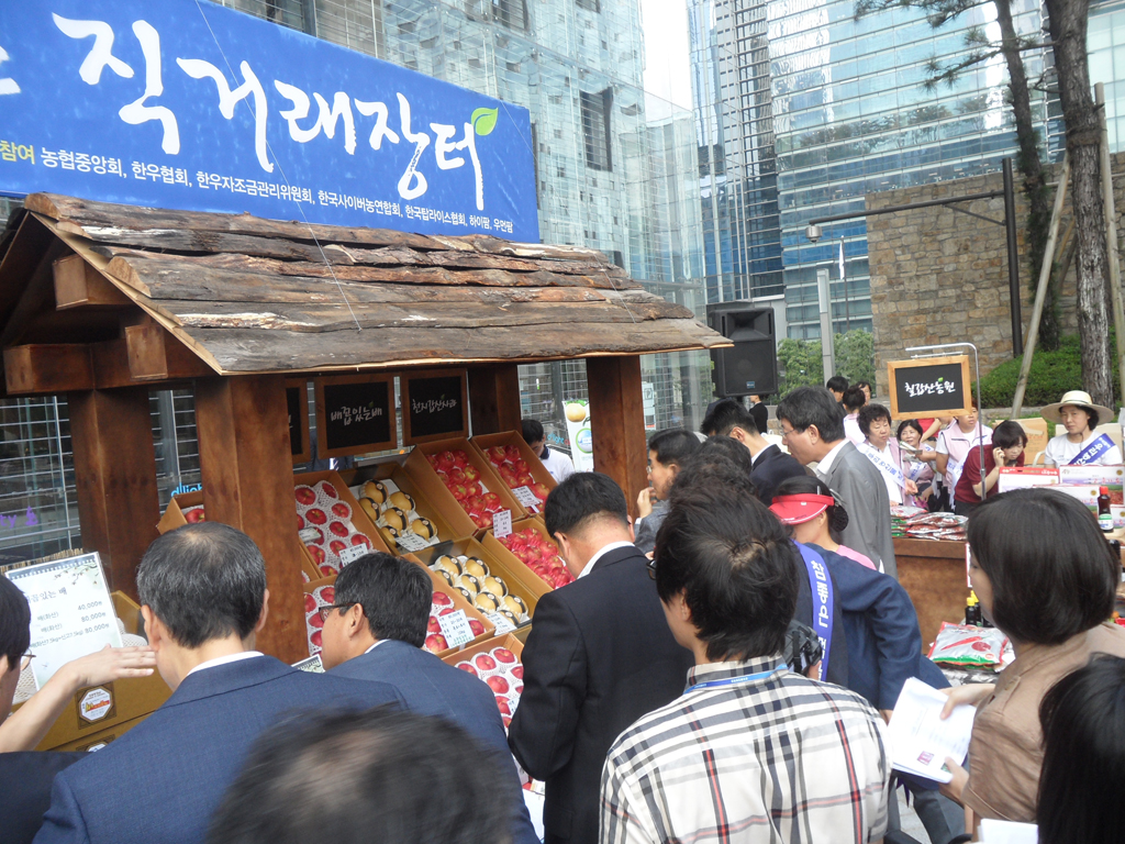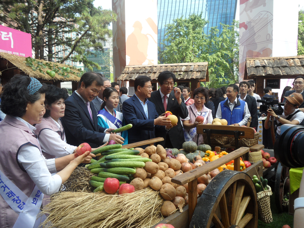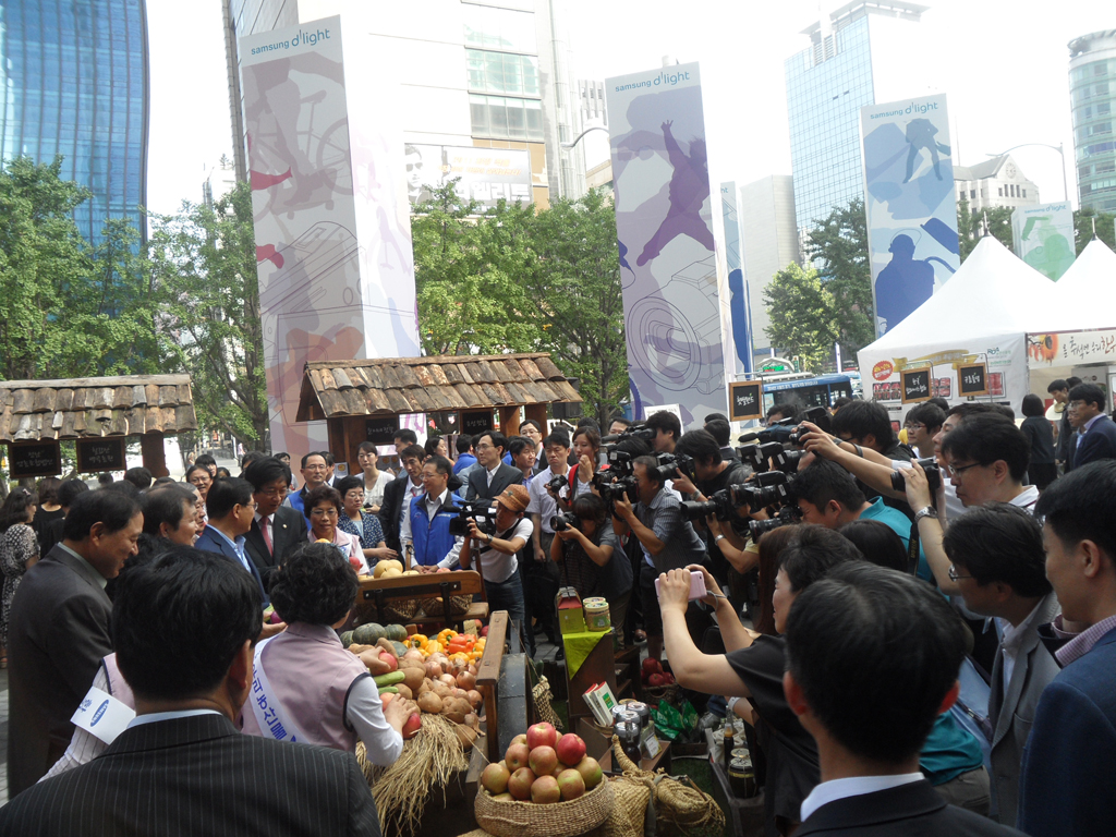 ¡ã 8¿ù31ÀÏ ¼¿ï ¼Ãʱ¸ »ï¼º ¼ÃÊ»ç¿Á È«º¸°ü ¡®µô¶óÀÌÆ®¡¯ ¾Õ ±¤Àå¿¡¼ »ï¼º°ú ³óÃÌÁøÈïûÀÌ °øµ¿À¸·Î °³ÃÖÇÑ ¡®³ó¾÷Àΰú ÇÔ²²ÇÏ´Â ¿ì¸® ³ó»ê¹° Á÷°Å·¡ ÀåÅÍ¡¯¿¡¼ ¹Î½Â±Ô(¿À¸¥ÂÊ µÎ¹øÂ°) ³ó¾÷ÁøÈïûÀåÀÇ ¾È³»·Î ±è¼øÅÃ(¡¨¼¼¹øÂ°) »ï¼º ¹Ì·¡Àü·«½ÇÀå, ÀÌÀ±¿ì(¿ÞÂÊ µÎ¹øÂ°) »ï¼ºÀüÀÚ ºÎȸÀå, ³²È£°æ ÇÑ¿ìÀÚÁ¶±Ý°ü¸®À§¿øÀå(¡¨ ³×¹øÂ°) µîÀÌ ³ó»ê¹°À» °í¸£°í ÀÖ´Ù.