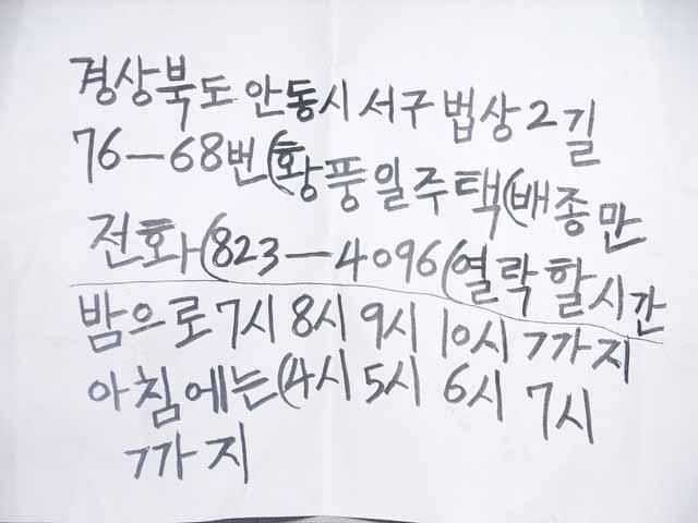ÁÖ¼Ò : ¿ì)760-843 °æºÏ ¾Èµ¿½Ã ±æ¾È¸é ¼Û»ç¸® 60-9¹øÁö / ¸ÞÀÏ : jsy5056@naver.com